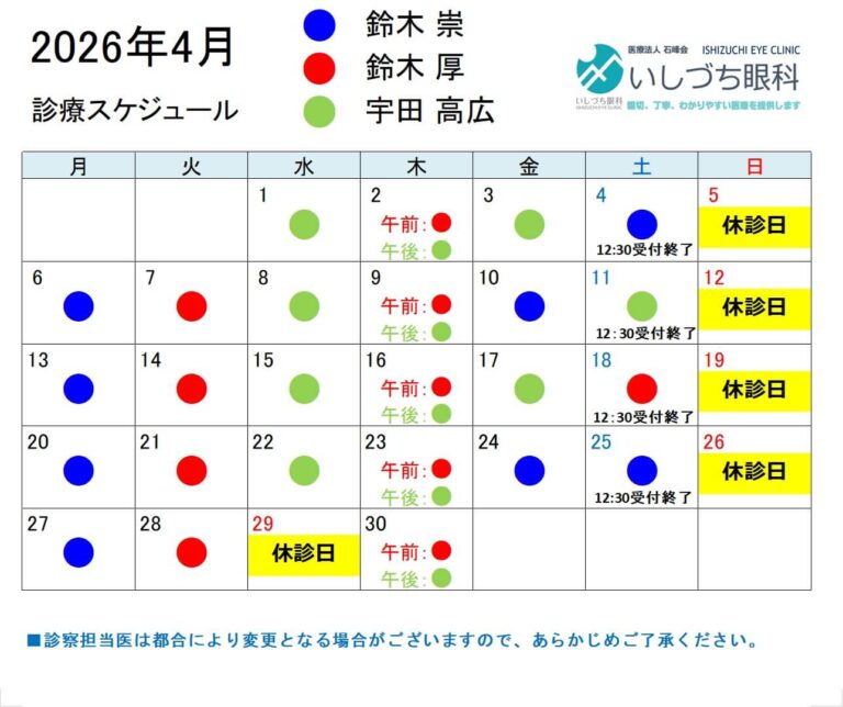 地域の眼科医療に貢献すべく、スタッフ一同精進してまいりますので、引き続きよろしくお願いします。